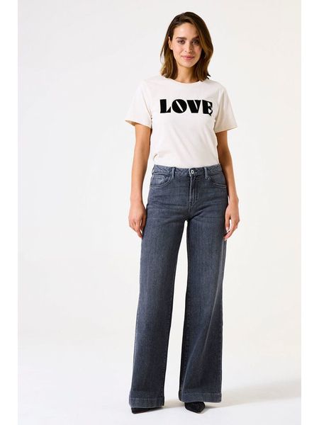– wysokość pasa: high waist- fason: Wide fit- krój nogawek: szeroki- szlufki na pasek: tak- zapięcie: guzik i suwak- kieszenie: 5 klasycznych- naszywki: ze skóry syntetycznej- przetarcia: tak