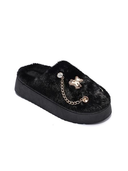 – zapięcie: bez- noski: zaokrąglone- detale: obszycie ze sztucznego futerka, ozdobny łańcuszek- podeszwa: antypoślizgowa