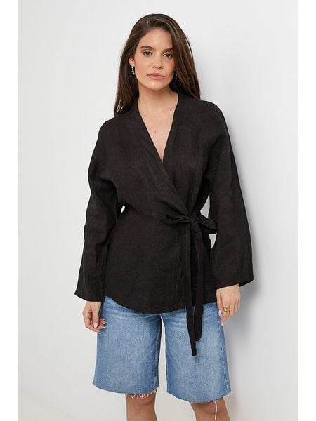 – czysty len- zapięcie: wiązane tasiemki- krój: prosty- look: jednokolorowy