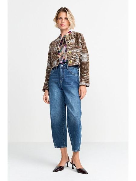 – z dodatkiem wełny- dekolt: okrągły- zapięcie: listwa guzikowa- krój: cropped- wzór: melanżowy