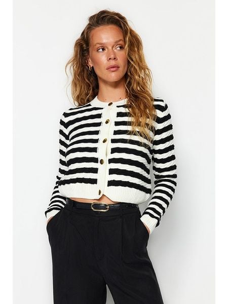trendyol Kardigan w kolorze kremowo-czarnym rozmiar: M