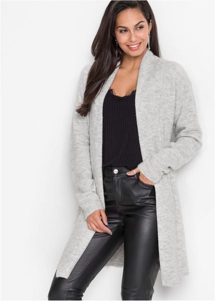 Długi sweter bez zapięcia z szalowym kołnierzem