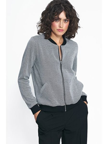 – dekolt: okrągły- zapięcie: suwak- ściągacz: dekolt, zakończenia rękawów, dolny brzeg- krój: prosty- wzór: na całości