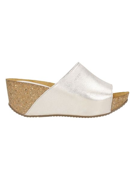 – skóra licowa- zapięcie: bez- noski: otwarte- powierzchnia: z metalicznym połyskiem- skórzana wkładka: tak- forma obcasa: koturny- podeszwa: antypoślizgowa