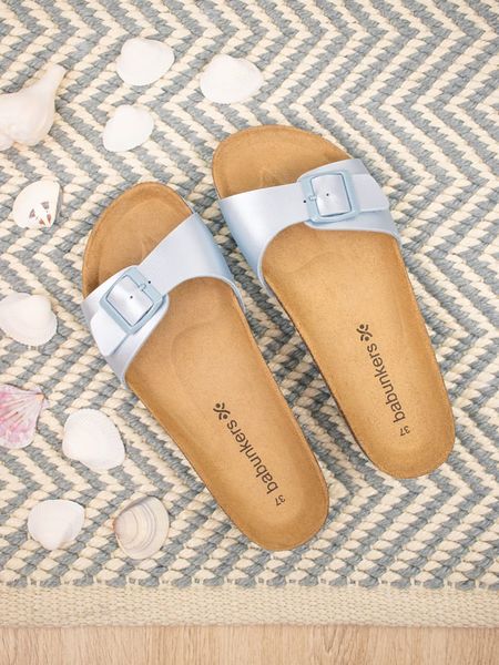 – zapięcie: sprzączka- otwarte noski- wkładka: formowana ergonomicznie- powierzchnia: metalicznie błyszcząca- lekko profilowana podeszwa