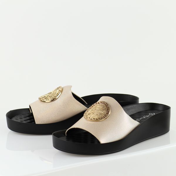 Złote klapki damskie na platformie Potocki 43326
