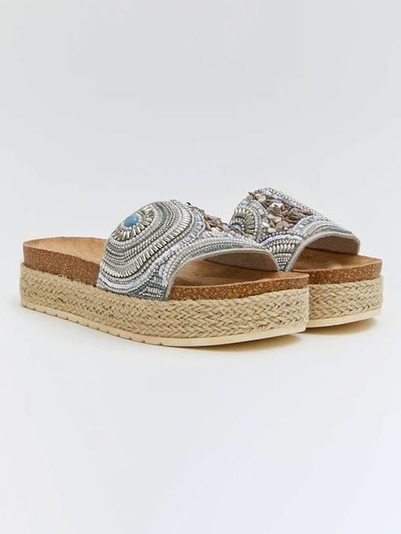 – zapięcie: bez- noski: otwarte- detale: błyszczące kamyczki- forma obcasa: platforma- podeszwa: antypoślizgowa
