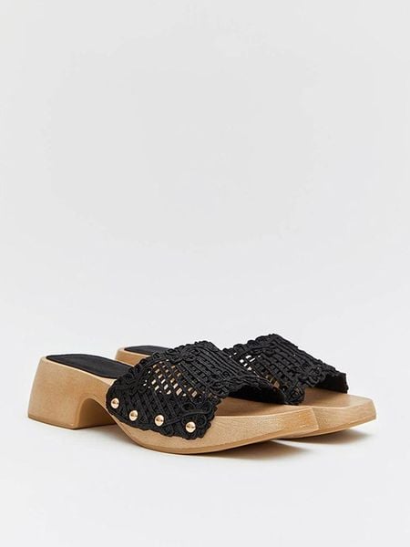 – zapięcie: bez- noski: otwarte- detale: plecionka, ozdobne nity- forma obcasa: blokowy- podeszwa: antypoślizgowa