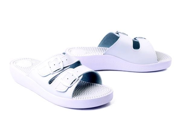 klapki ze sklepu e-kobi klapki sanital-flex klapki na koturnie obuwie damskie sanital-flex obuwie damskie e-kobi klapki na średnim obcasie klapki bez obcasa białe klapki