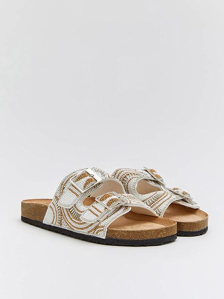 – zapięcie: sprzączka- noski: otwarte- detale: ozdobne koraliki- podeszwa: antypoślizgowa