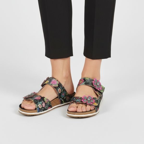 Klapki damskie Laura Vita, z miękką cholewką ozdobioną kwiatowym motywem regulowane paski elastyczna podeszwa, kolorowe, 32 AS318-32