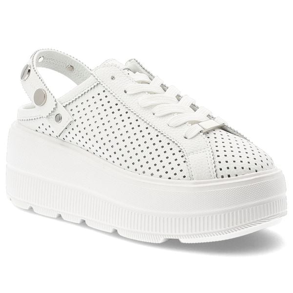 Klapki damskie S.Barski, ze skóry naturalnej licowej ażurowa cholewka platforma sznurowane styl casual, białe, LR61-7088