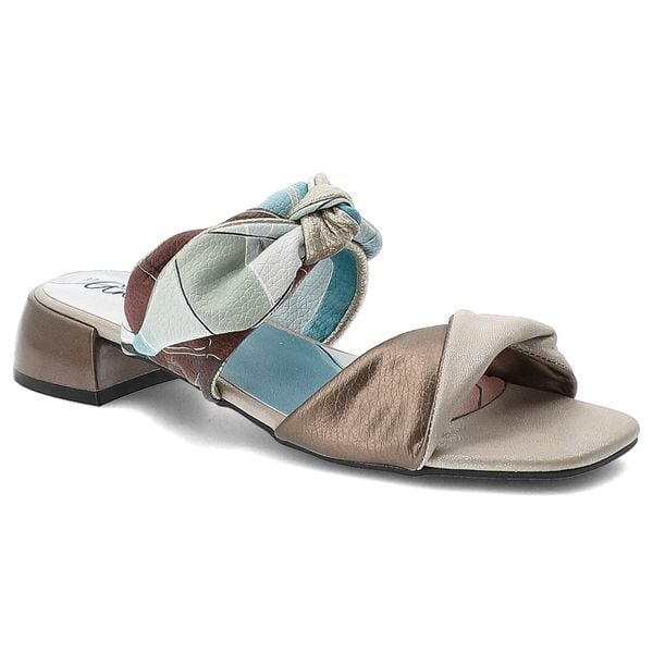 Klapki damskie Anekke, ze skóry naturalnej licowej ozdobny węzeł niski obcas elegancki styl, niebieskie, 42381-457