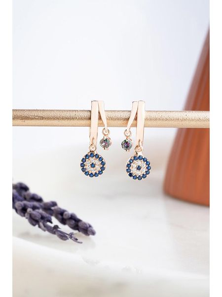 – materiał: srebro Sterling próby 925- powłoka: w kolorze różowego złota- zapięcie: wtyk- rodzaj kamienia: cyrkonia- kolor kamienia: bezbarwny, granatowyWskazówka: Zdjęcie produktu w powiększeniu.