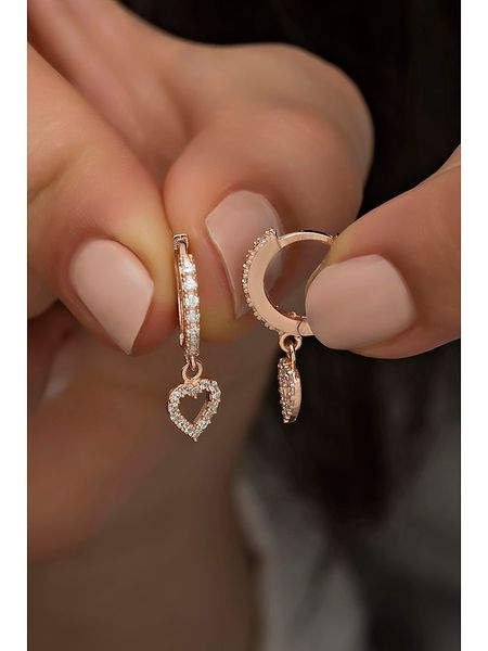 – materiał: srebro Sterling próby 925- powłoka: w kolorze różowego złota- zapięcie: wtyk- rodzaj kamienia: cyrkonia- kolor kamienia: bezbarwnyWskazówka: Zdjęcie produktu w powiększeniu.