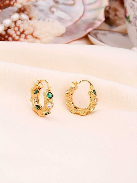 – materiał: mosiądz- powłoka: złoto- zapięcie: wtyk- rodzaj kamienia: cyrkonia- kolor kamienia: zielony, bezbarwnyWskazówka: Zdjęcie produktu w powiększeniu.