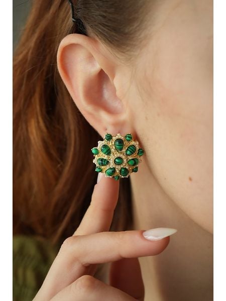 – materiał: mosiądz- powłoka: złoto- zapięcie: wtyk- rodzaj kamienia: malachit- kolor kamienia: zielonyWskazówka: Zdjęcie produktu w powiększeniu.