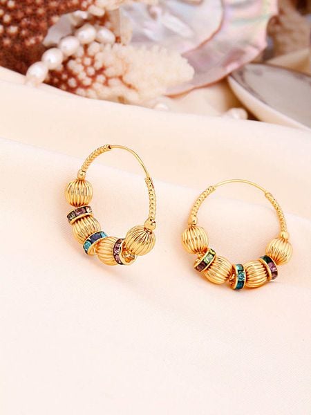 – materiał: mosiądz- powłoka: złoto- zapięcie: wtyk- rodzaj kamienia: cyrkonia- kolor kamienia: wielokolorowyWskazówka: Zdjęcie produktu w powiększeniu.