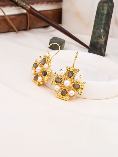 L’Atelier de Gaia Pozłacane kolczyki z perłami i labradorytem rozmiar: onesize
