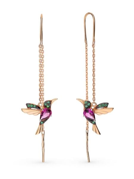 – materiał: srebro Sterling próby 925- powłoka 1: rodowana- powłoka 2: w kolorze różowego złota- zapięcie: bigiel- rodzaj kamienia: cyrkonia- kolor kamienia: fioletowy, zielonyWskazówka: Zdjęcie produktu w powiększeniu.