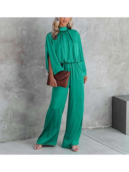 – kołnierz: stójka- zapięcie: wiązanie na plecach- talia: elastyczna- zakończenia nogawek: dzwony- krój: luźny- look: jednokolorowy