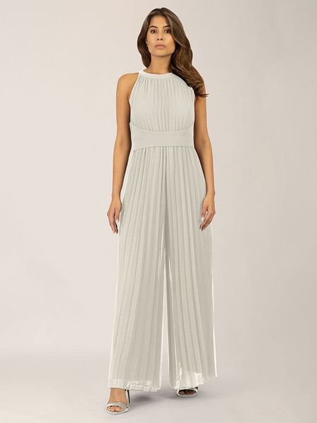 – ramiączka: szerokie- dekolt: okrągły- zapięcie: guzik na plecach- krój nogawek: Wide Leg- detale: plisy- krój: taliowany- look: jednokolorowy