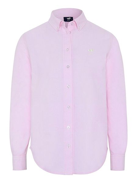 – kołnierz: button-down- zapięcie: listwa guzikowa- zakończenie rękawów: mankiet na guzik- fason: regular fit- krój: prosty- dolny brzeg: zaokrąglony- detale: haft z logo- look: jednokolorowy