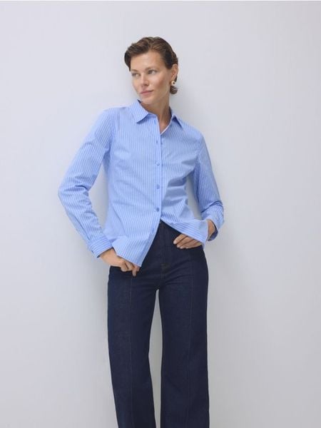 Koszula o dopasowanym fasonie, wykonana z tkaniny z bawełną.