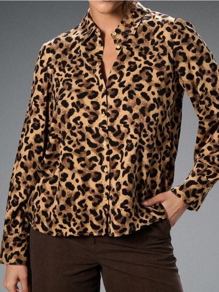 Wiskozowa koszula regular fit w panterkę – beżowy