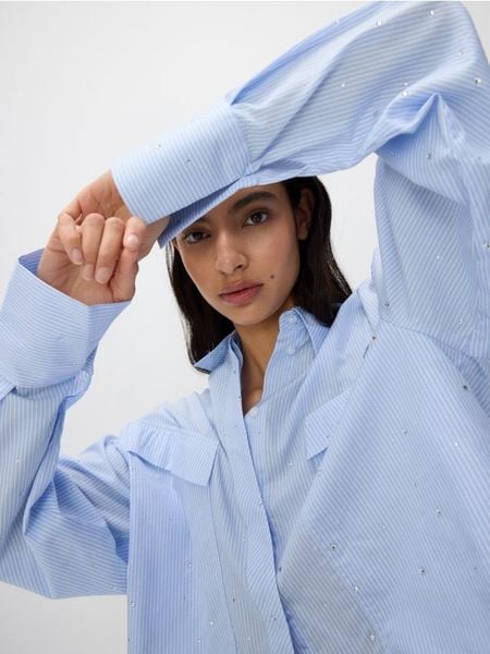 Krótka koszula z aplikacjami ze strasu – jasnoniebieski