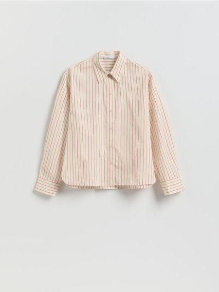 Koszula o swobodnym kroju, wykonana z tkaniny z bawełną.