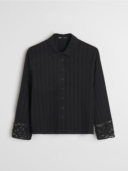Sinsay – Bawełniana teksturowana koszula z koronkowym mankietem – czarny –