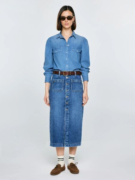 Koszula damska jeansowa z bufkami niebieska Indiana 164