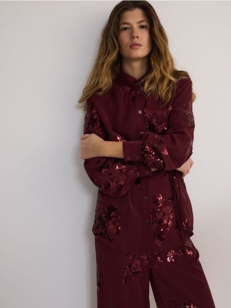 Satynowa koszula z cekinowymi aplikacjami – burgundowy