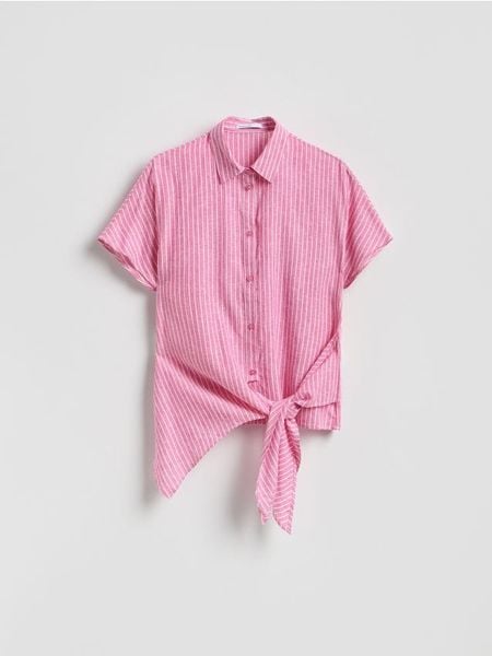 Koszula o prostym kroju, wykonana z lnu i wiskozy.