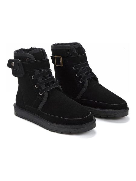 – zapięcie: sznurowanie- noski: zaokrąglone- zapiętki: wzmocnione- wyściółka: ogrzewająca skóra owcza i materiał tekstylny- skórzana wkładka: tak- detale: ozdobna klamra- podeszwa: antypoślizgowa