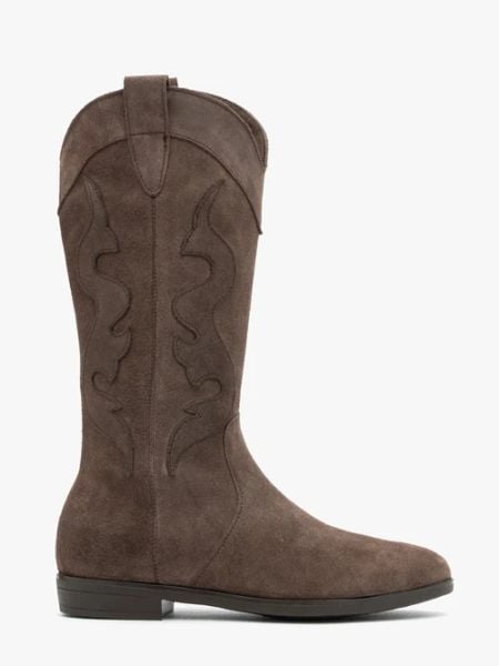 Brązowe kozaki kowbojki z dekoracyjnym haftem