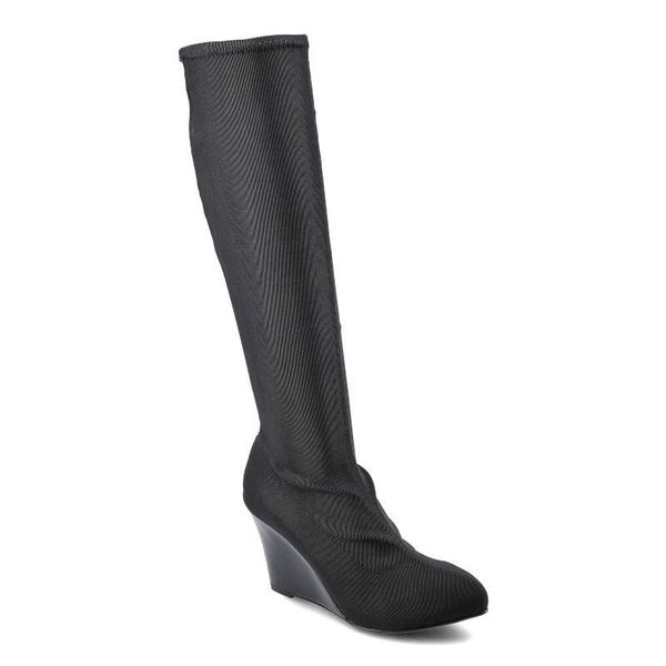 Kozaki damskie Massimo Poli, z elastyczną materiałową cholewką zwężaną linią stopy i stabilną koturnową podeszwą, czarne, 4Y2-5C-0642