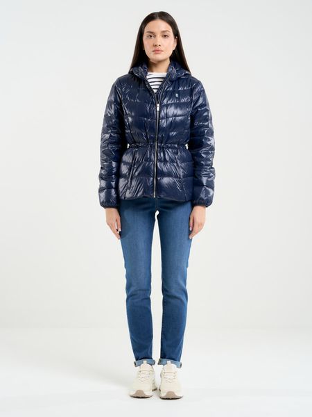 Kurtka damska puchowa z gumką w talii z kapturem granatowa Anissa 403