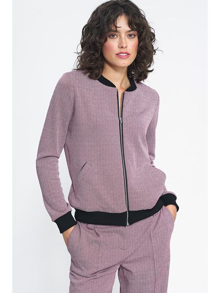 – kołnierz: College- zapięcie: suwak- ściągacz: kołnierz, zakończenia rękawów, dolny brzeg- kieszenie: wpuszczane- krój: prosty- wzór: na całości
