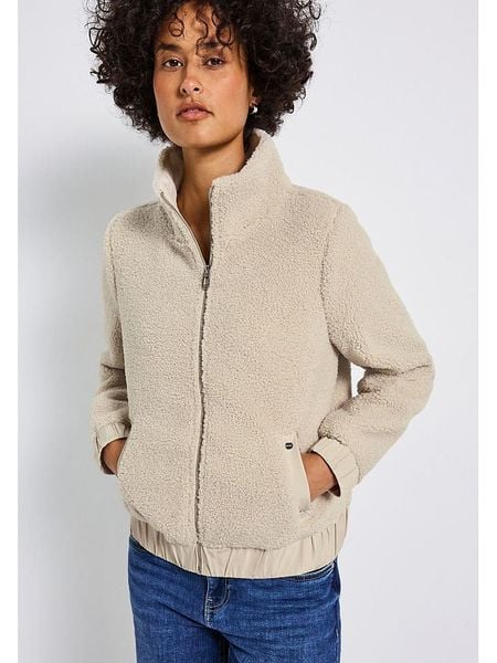 – przyjemnie miękka powierzchnia- kołnierz: stójka- zapięcie: suwak- zakończenie rękawów: elastyczne- kieszenie: wpuszczane- dolny brzeg: elastyczny- krój: prosty- look: jednokolorowy, pluszowy