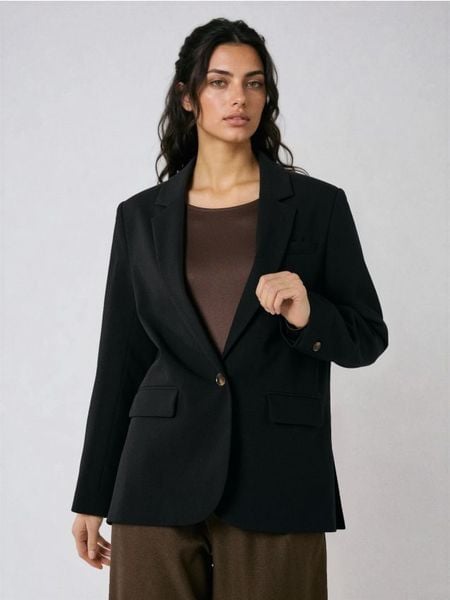 Sinsay – Klasyczna gładka jednorzędowa marynarka z domieszką wiskozy – czarny –