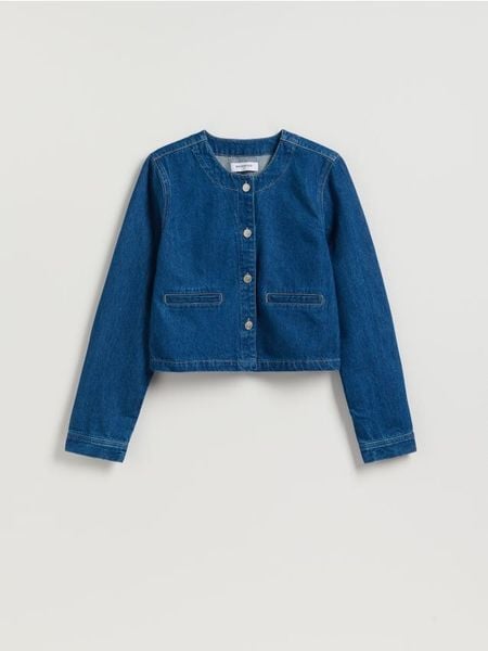 Marynarka o prostym kroju, wykonana z denimu.