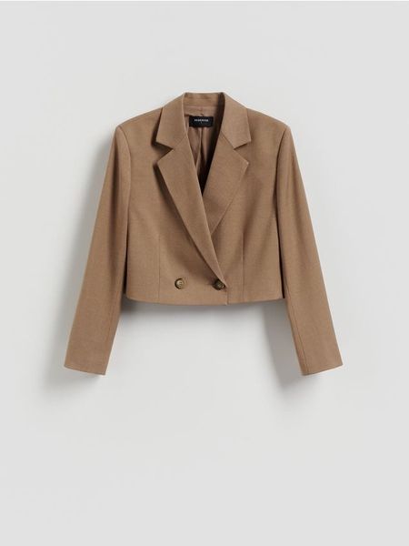 Marynarka o krótszym kroju, wykonana z tkaniny z wiskozą.