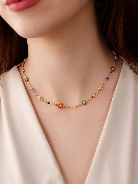 Nakkash Pozłacany naszyjnik z emaliowanymi elementami ozdobnymi – dł. 40 cm rozmiar: onesize