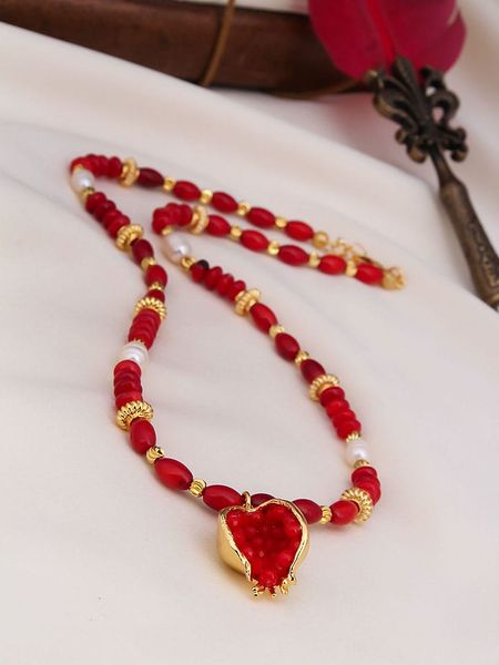 czerwone naszyjniki naszyjniki pozłacane naszyjniki z perłą naszyjniki złote naszyjniki ze sklepu limango.pl naszyjniki z mosiądzu biżuteria damska l’atelier de gaia biżuteria damska limango.pl naszyjniki l’atelier de gaia naszyjniki z koralem