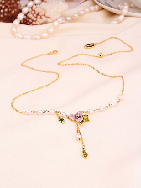 – materiał: mosiądz- powłoka 1: złoto- powłoka 2: częściowo emaliowana- zapięcie: karabińczyk- rodzaj perły: hodowlana – słodkowodna- kolor pereł: biały- regulacja długości: takWskazówka: Zdjęcie produktu w powiększeniu.