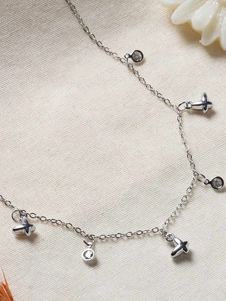 – materiał: metal- powłoka: srebro- typ łańcuszka: ankier- zapięcie: karabińczyk- element ozdobny: motyw zwierzęcy- rodzaj kamienia: cyrkonia- kolor kamienia: bezbarwnyWskazówka: Zdjęcie produktu w powiększeniu.