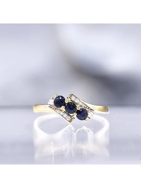 – materiał: 9-karatowe złoto próby 375- kamień 1: diament- karat: 0,09- kamień 2: szafirWskazówka: Zdjęcie produktu w powiększeniu.
