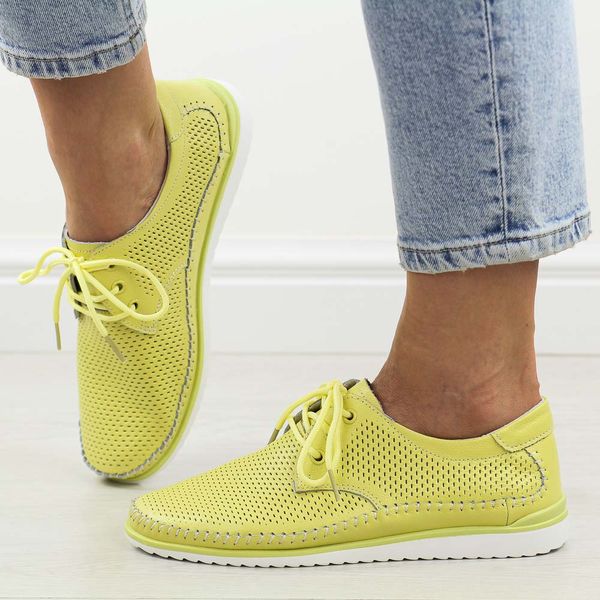 Cytrynowe skórzane ażurowe półbuty damskie T.Sokolski W26-01